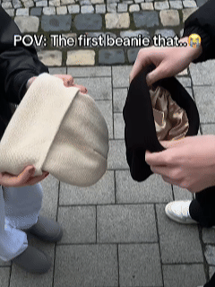 ✨ Keep your head warm & your hair happy – grab your Satin Lined Beanie today! 🖤