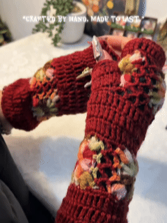 Wrap your hands in warmth and charm this winter! 🌸 These hand-knitted, fleece-lined fingerless gloves are as cozy as they are cute — crafted with care for comfort, style, and everyday practicality.