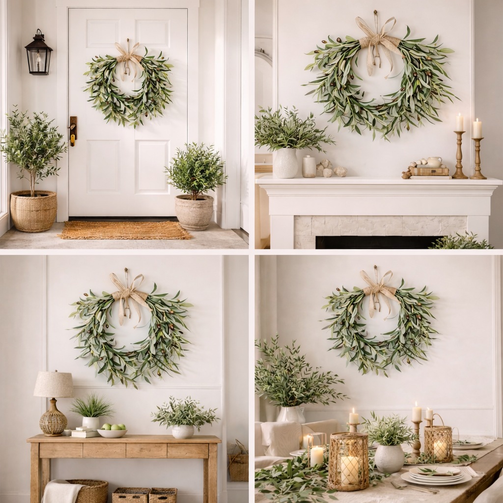 Heart Shaped Artificial Olive Leaf & Fruit Wreath