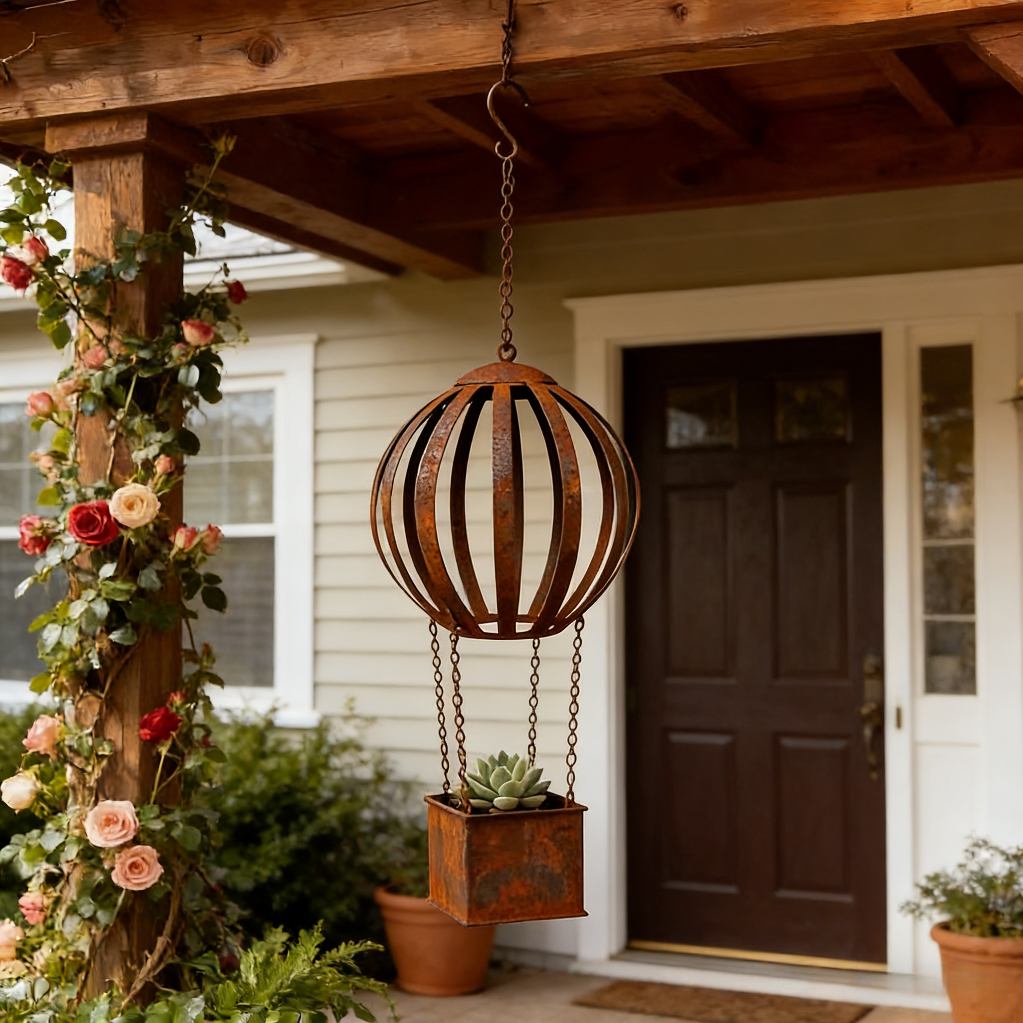 Rusty Metal Hot Air Balloon Hanging Basket