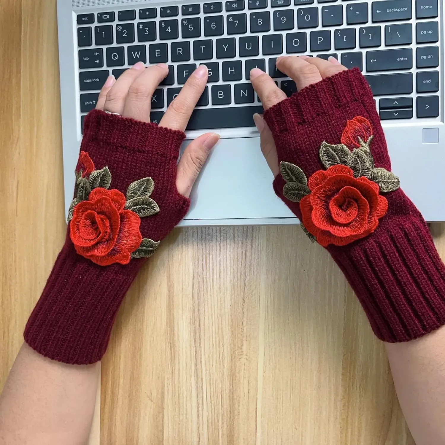 Short fingerless Glove: These embroidered knit glove for women featuring an elegant and attractive flower gives you a fashionable winter.